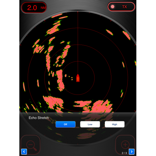 You get full touch interface from the iPhone and iPad – with zoom and moving around the image. Two devices can connect to the radar at the same time.